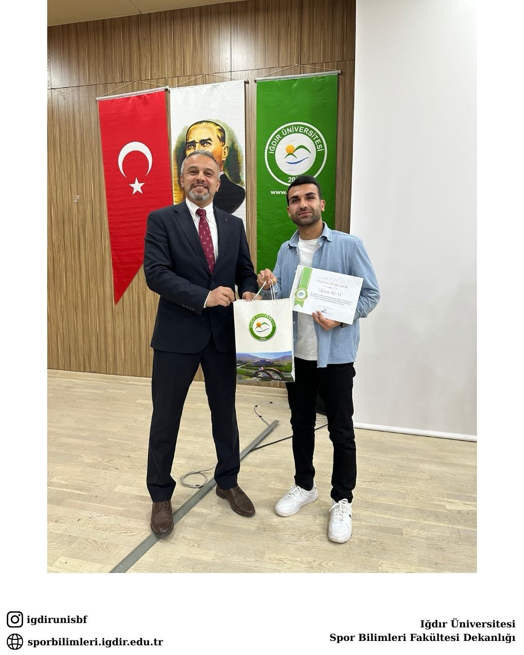 Jüri değerlendirmesi sonucu birinci olan Oktay KUM’a, Spor Bilimleri Fakültesi Geleneksel Mezun Söyleşileri Programında Dekanımız Prof. Dr. İbrahim CAN tarafından Teşekkür Belgesi ve Akademik Eğitim Seti ödülü takdim edildi.
